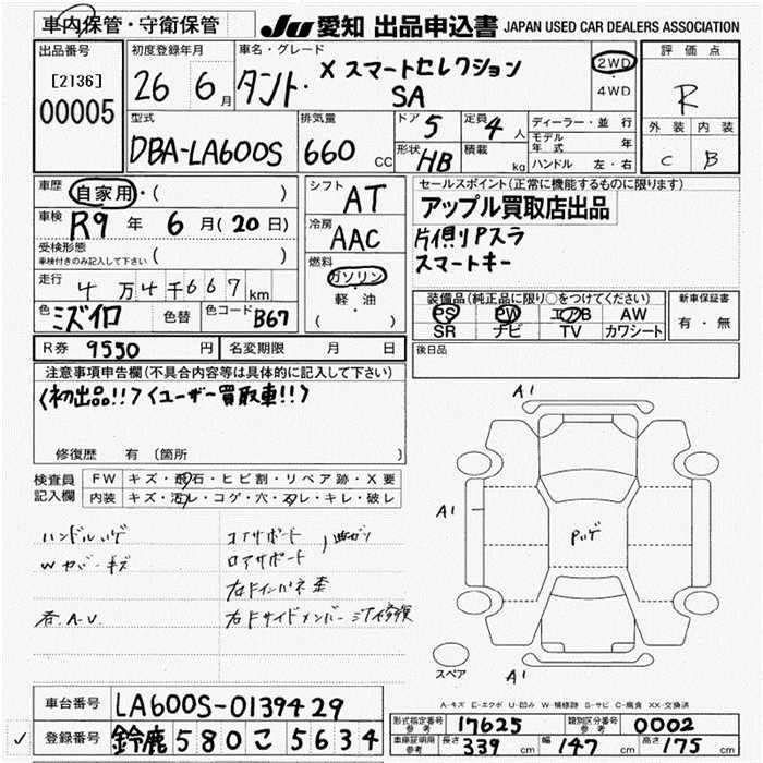 | X TURBO SA | LA600S | KF | Передний | CVT | 0.658 л | 64 л.с | AИ-92 | 1 470 857 ¥ | |