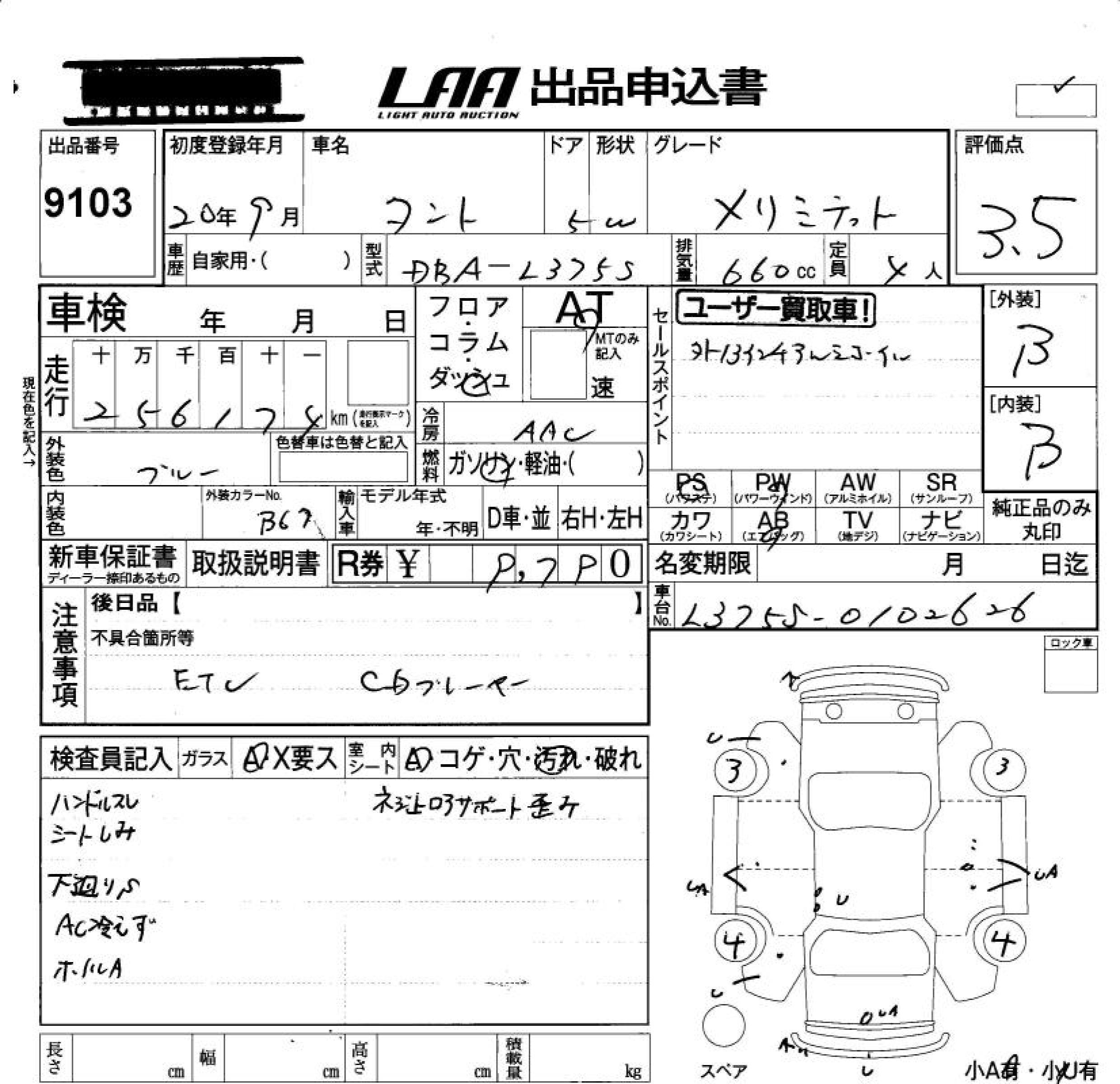 | WONDERFUL SELECTION | L375S | KF-VE | Передний | 4AT | 0.658 л | 58 л.с | AИ-92 | 1 240 000 ¥ | |