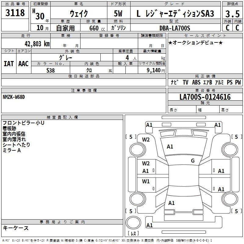 | L SPECIAL LIMITED SA III | LA700S | KF | Передний | CVT | 0.658 л | 52 л.с | AИ-92 | 1 490 400 ¥ | |