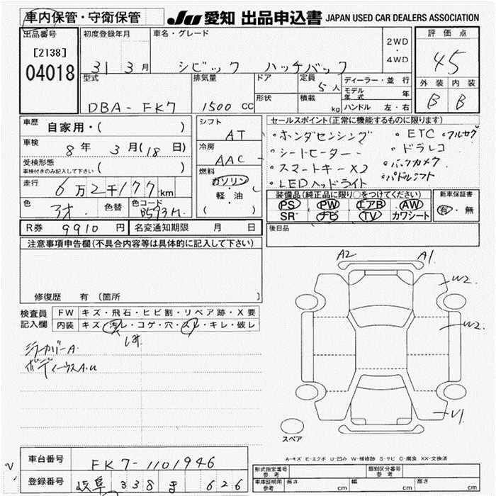 | HATCHBACK HONDA SENSING | FK7 | L15C | Передний | 6MT | 1.496 л | 182 л.с | AИ-95 | 2 852 300 ¥ | |