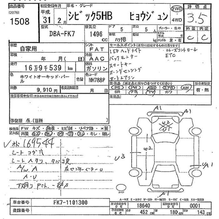 | HATCHBACK HONDA SENSING | FK7 | L15C | Передний | CVT | 1.496 л | 182 л.с | AИ-95 | 2 852 300 ¥ | |