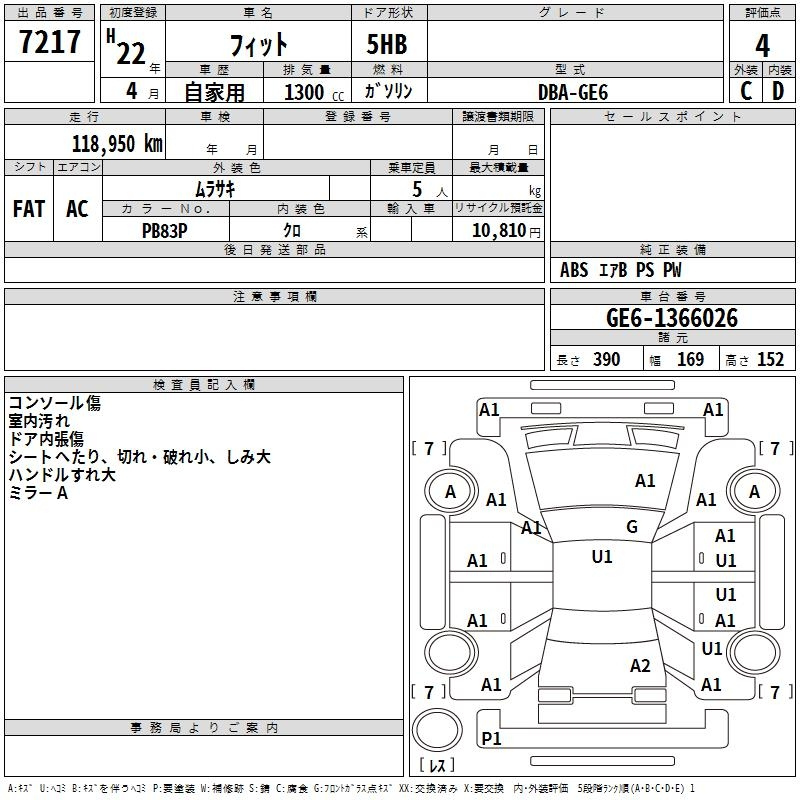| G SMART SELECTION | GE6 | L13A | Передний | 5MT | 1.339 л | 100 л.с | AИ-92 | 1 350 000 ¥ | |