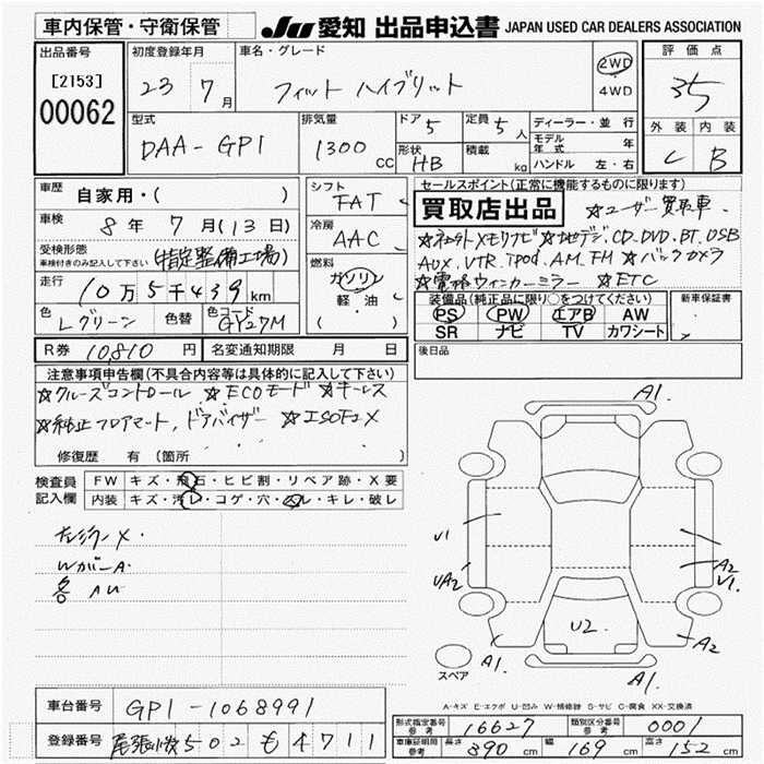 G GE6 L13A Передний 5MT 1.339 л 100 л.с AИ-92 1 230 000 ¥