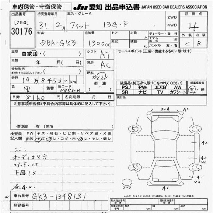 | 13G F | GK4 | L13B | Full-time 4WD | CVT | 1.317 л | 100 л.с | AИ-92 | 1 653 300 ¥ | |