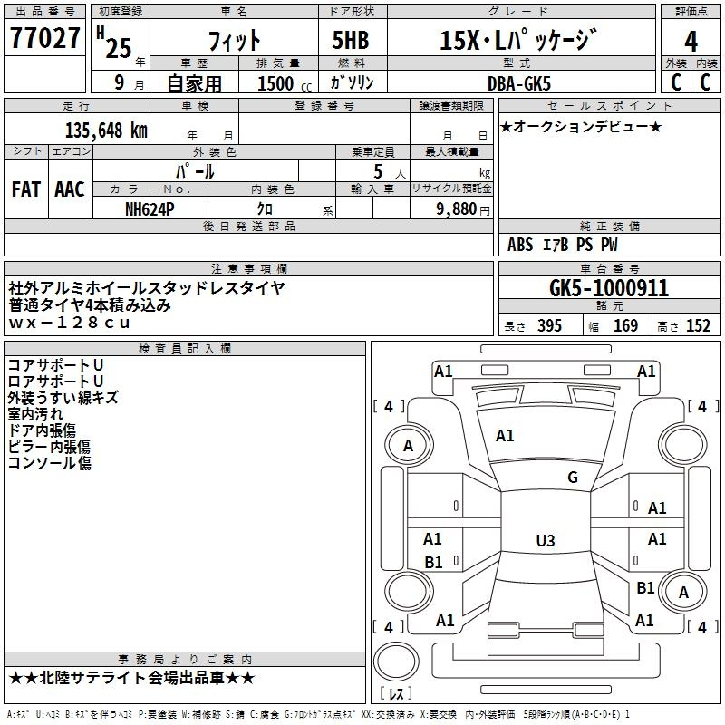 13G L PACKAGE GK4 L13B Full-time 4WD CVT 1.317 л 100 л.с AИ-92 1 650 000 ¥