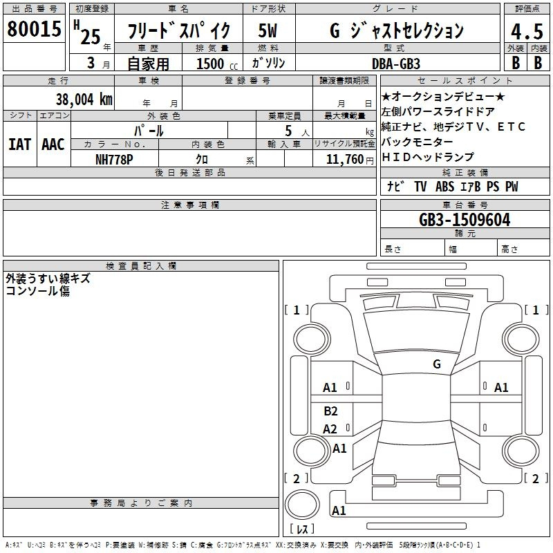 G JUST SELECTION+ GB4 L15A Full-time 4WD 5AT 1.496 л 118 л.с AИ-92 2 128 000 ¥
