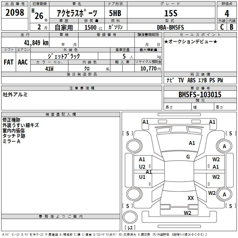 15S TOURING BM5FP P5-VPS Передний 6MT 1.496 л 111 л.с AИ-92 2 138 400 ¥