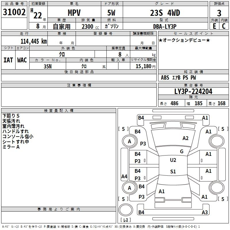 23S L PACKAGE LY3P L3-VE Full-time 4WD 6AT 2.26 л 163 л.с AИ-92 3 360 000 ¥