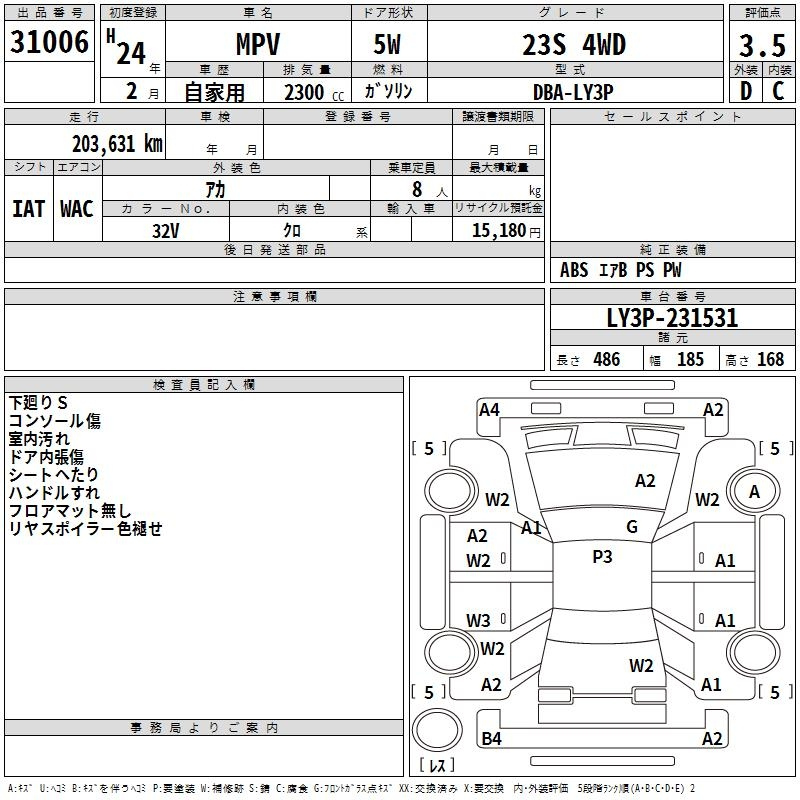 | 23S L PACKAGE | LY3P | L3-VE | Передний | 5AT | 2.26 л | 163 л.с | AИ-92 | 3 100 000 ¥ | |