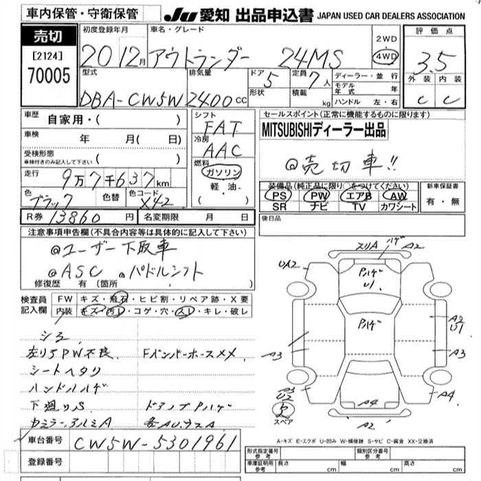 24G CW5W 4B12(MIVEC) Full-time 4WD CVT 2.359 л 170 л.с AИ-92 2 656 500 ¥