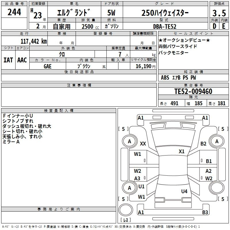 | RIDER WHITE LEATHER SEAT MANUAL SEAT | TE52 | QR25DE | Передний | CVT | 2.488 л | 170 л.с | AИ-92 | 3 864 000 ¥ | |