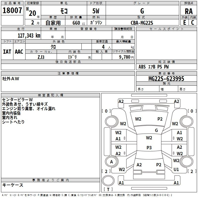 | S | MG22S | K6A | Передний | 4AT | 0.658 л | 54 л.с | AИ-92 | 1 058 400 ¥ |