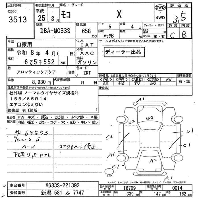X FOUR MG33S R06A Full-time 4WD CVT 0.658 л 52 л.с AИ-92 1 377 600 ¥