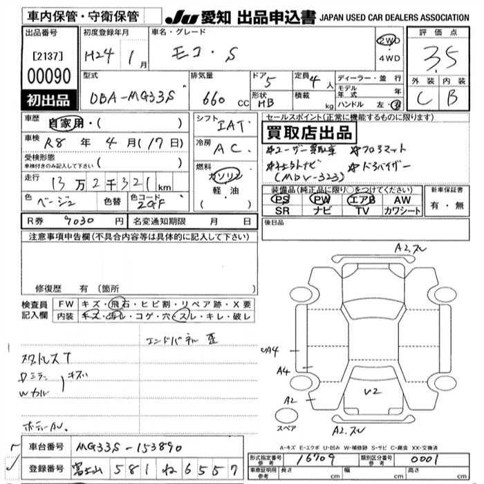 S IDLING STOP AERO STYLE MG33S R06A Передний CVT 0.658 л 54 л.с AИ-92 1 289 400 ¥