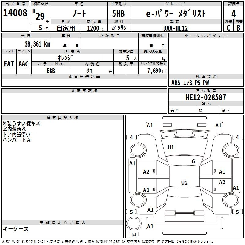 e-POWER X MODE PREMIER HE12 HR12DE Передний CVT 1.198 л 79 л.с AИ-92 2 214 000 ¥