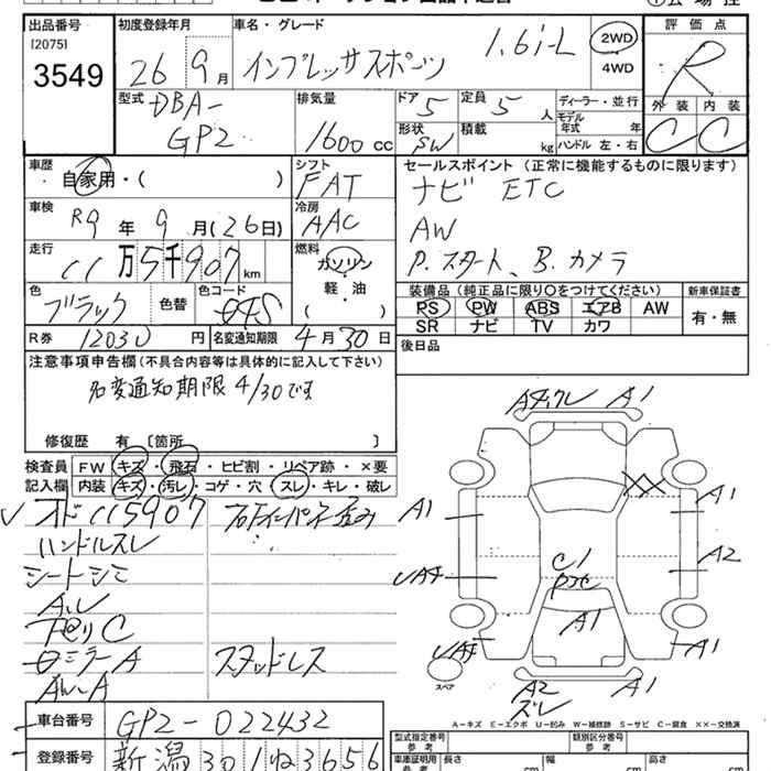 WRX STI GVB EJ20 Full-time 4WD 6MT 1.994 л 308 л.с AИ-95 3 844 800 ¥