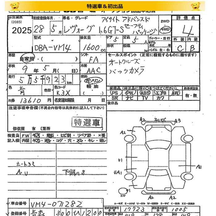 1.6GT-S EYE SIGHT VM4 FB16 Full-time 4WD CVT 1.599 л 170 л.с AИ-92 3 056 400 ¥