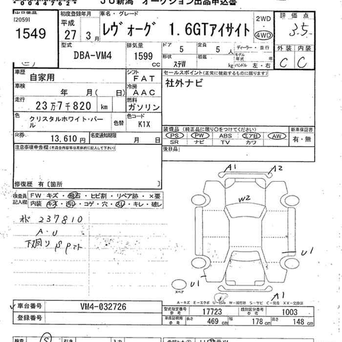 1.6GT EYE SIGHT S STYLE VM4 FB16 Full-time 4WD CVT 1.599 л 170 л.с AИ-92 2 894 400 ¥