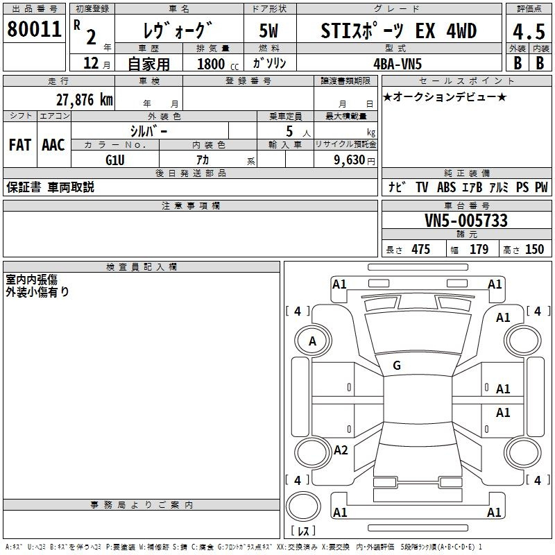 | STI SPORT | VN5 | CB18 | Full-time 4WD | CVT | 1.795 л | 177 л.с | AИ-92 | 3 707 000 ¥ | |