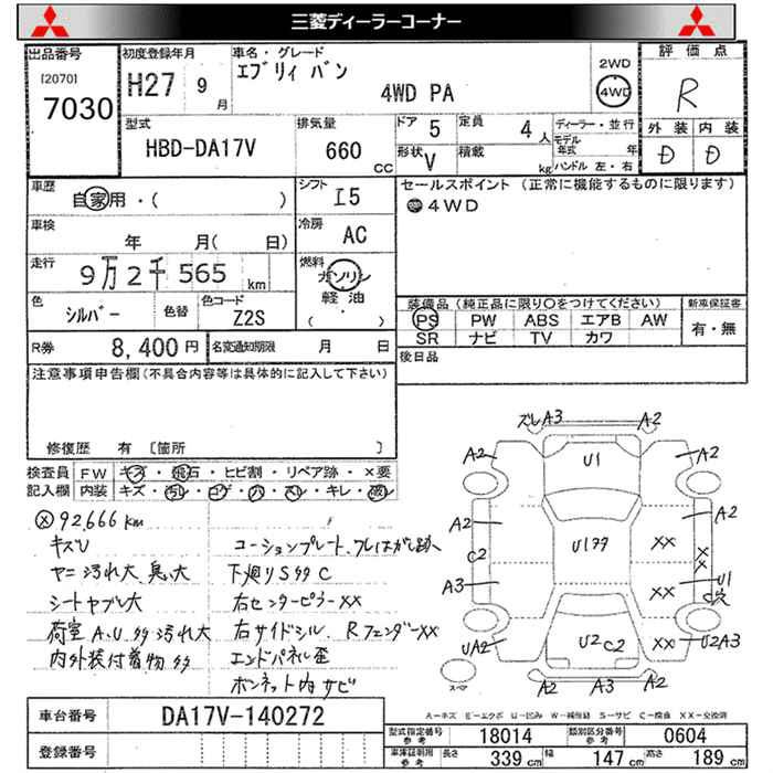 | GA | DA17V | R06A | Задний | 5AT | 0.658 л | 49 л.с | AИ-92 | 1 026 000 ¥ | |