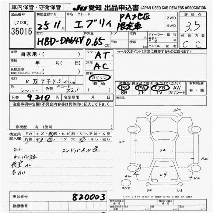 PA DA64V K6A Part-time 4WD 3AT 0.658 л 49 л.с AИ-92 1 097 250 ¥