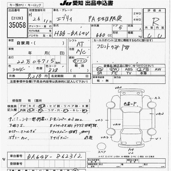 | PA | DA64V | K6A | Задний | 5MT | 0.658 л | 49 л.с | AИ-92 | 905 040 ¥ | |