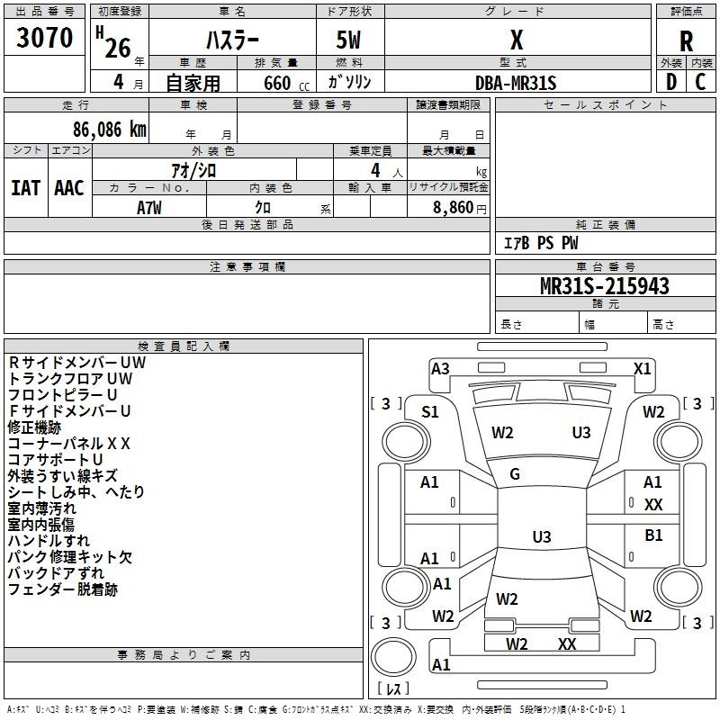 A MR31S R06A Передний 5MT 0.658 л 52 л.с AИ-92 1 048 950 ¥