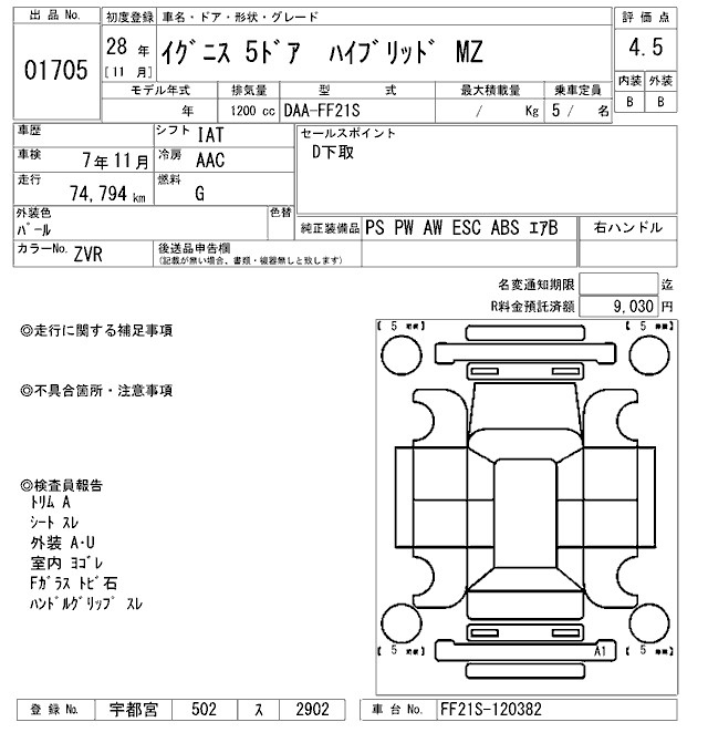 | HYBRID MZ | FF21S | K12C | Передний | CVT | 1.242 л | 91 л.с | AИ-92 | 1 641 600 ¥ | |