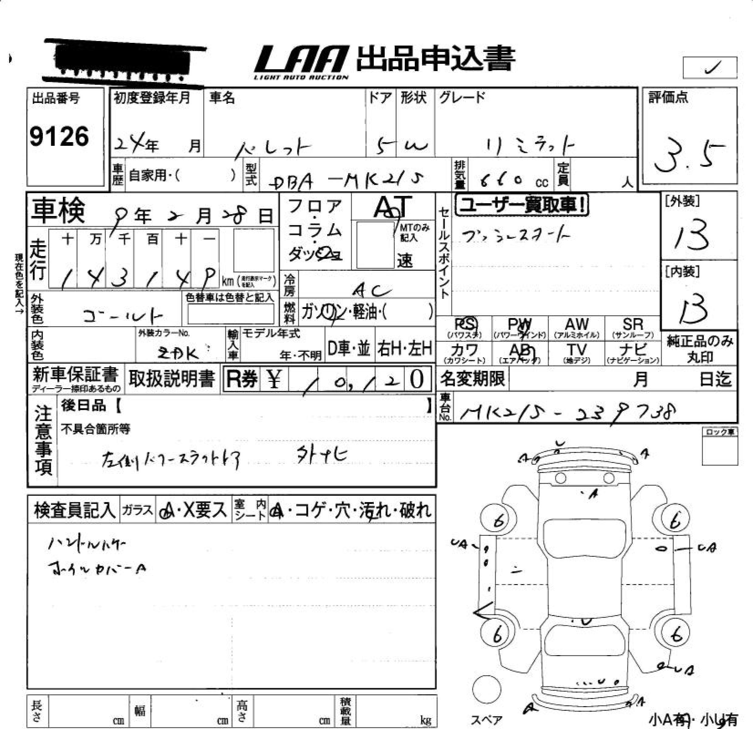 IS SELECTION MK21S K6A Передний CVT 0.658 л 54 л.с AИ-92 1 249 500 ¥