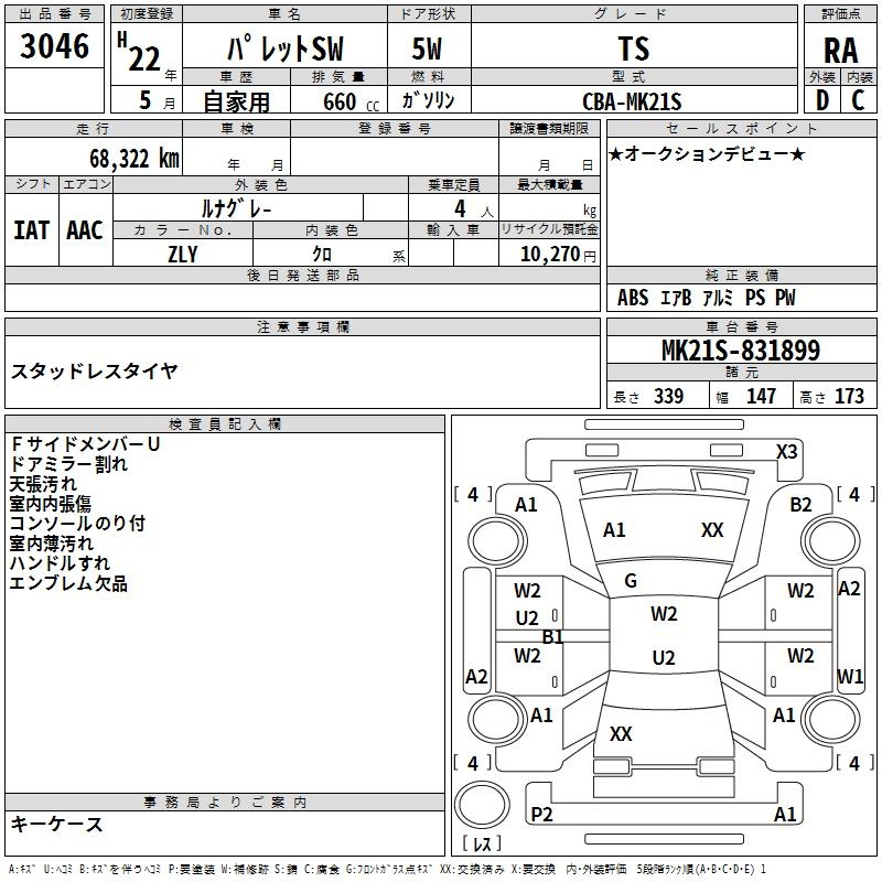 | X | MK21S | K6A | Передний | CVT | 0.658 л | 54 л.с | AИ-92 | 1 270 500 ¥ | |