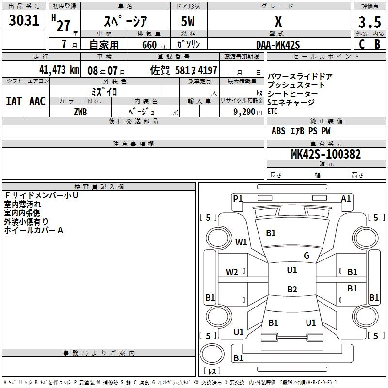 | X | MK42S | R06A | Передний | CVT | 0.658 л | 52 л.с | AИ-92 | 1 382 400 ¥ | |
