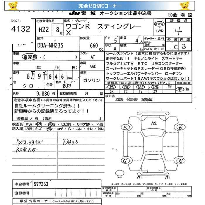 FX MH23S K6A Передний 5MT 0.658 л 54 л.с AИ-92 1 071 000 ¥