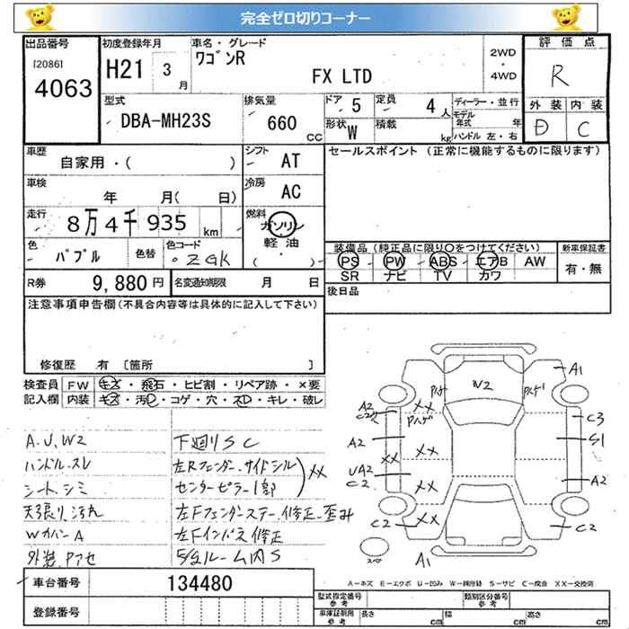 FX LIMITED II MH23S K6A Передний 4AT 0.658 л 54 л.с AИ-92 1 155 000 ¥