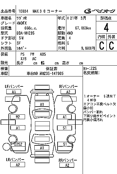 FX LIMITED II MH23S K6A Передний 4AT 0.658 л 54 л.с AИ-92 1 155 000 ¥