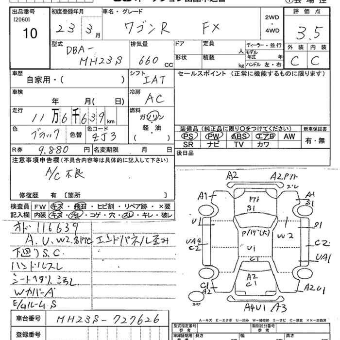 FX LIMITED IDLING STOP MH23S K6A Передний CVT 0.658 л 54 л.с AИ-92 1 307 250 ¥