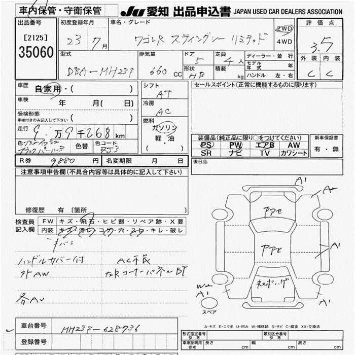 FX LIMITED IDLING STOP MH23S K6A Передний CVT 0.658 л 54 л.с AИ-92 1 307 250 ¥