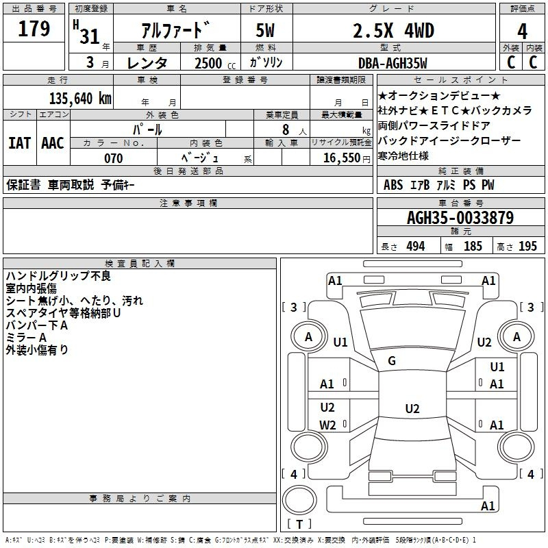 | 2.5S A PACKAGE | AGH30W | 2AR-FE | Передний | CVT | 2.493 л | 182 л.с | AИ-92 | 3 999 600 ¥ | |