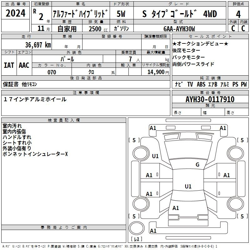 2.5S TYPE GOLD AGH30W 2AR-FE Передний CVT 2.493 л 182 л.с AИ-92 4 240 000 ¥