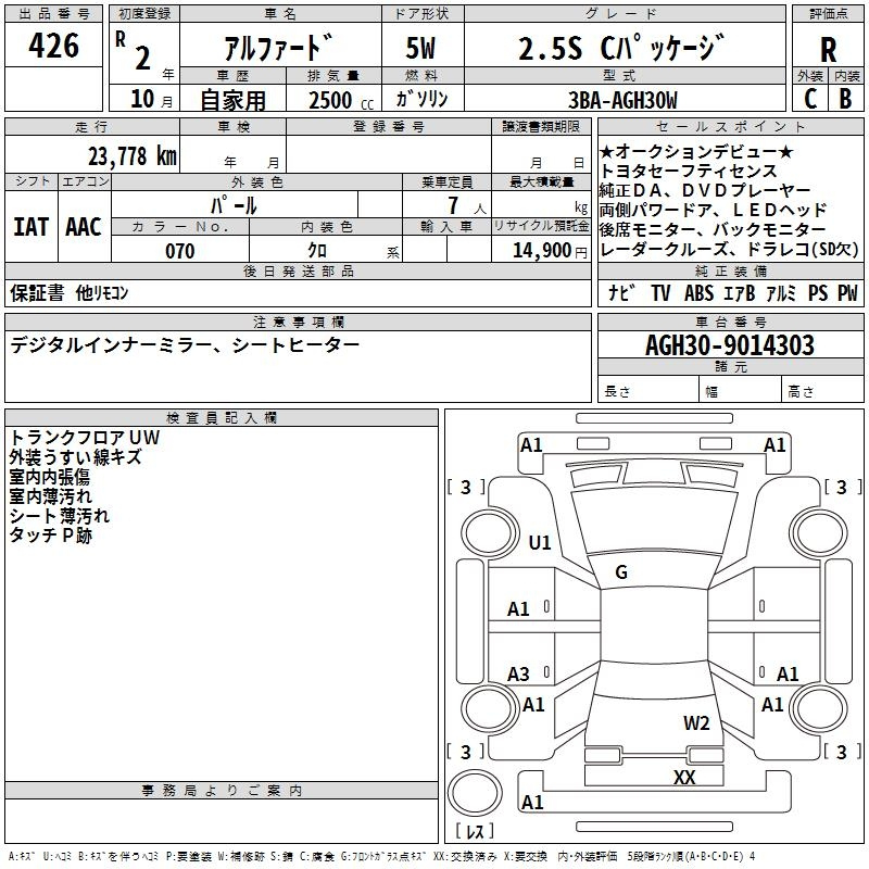 | 2.5S C PACKAGE | AGH30W | 2AR-FE | Передний | CVT | 2.493 л | 182 л.с | AИ-92 | 4 664 000 ¥ | |
