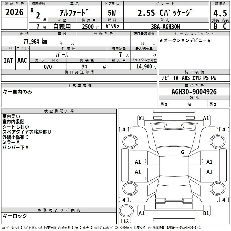 2.5S C PACKAGE AGH30W 2AR-FE Передний CVT 2.493 л 182 л.с AИ-92 4 664 000 ¥
