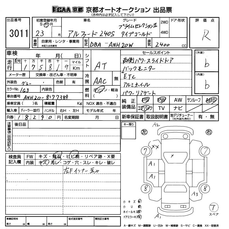 | 240S PRIME SELECTION II TYPE GOLD II | ANH25W | 2AZ-FE | Full-time 4WD | CVT | 2.362 л | 170 л.с | AИ-92 | 3 770 000 ¥ | |