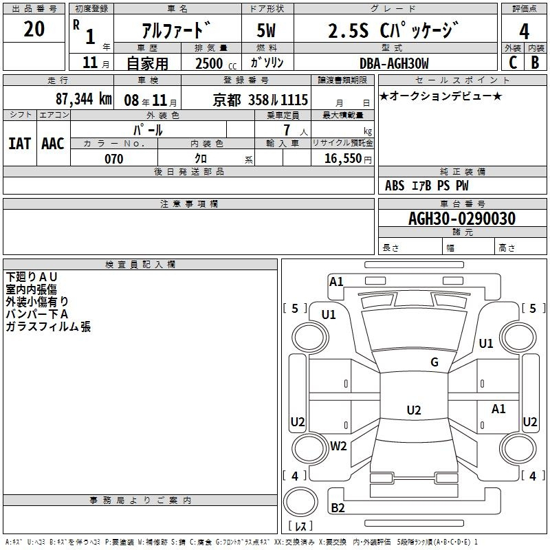 | 2.5S A PACKAGE | AGH30W | 2AR-FE | Передний | CVT | 2.493 л | 182 л.с | AИ-92 | 3 999 600 ¥ | |