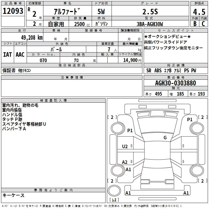 2.5S C PACKAGE AGH30W 2AR-FE Передний CVT 2.493 л 182 л.с AИ-92 4 664 000 ¥