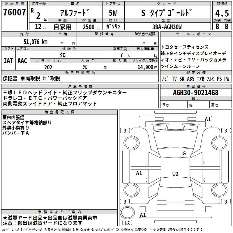 2.5S TYPE GOLD AGH30W 2AR-FE Передний CVT 2.493 л 182 л.с AИ-92 4 240 000 ¥