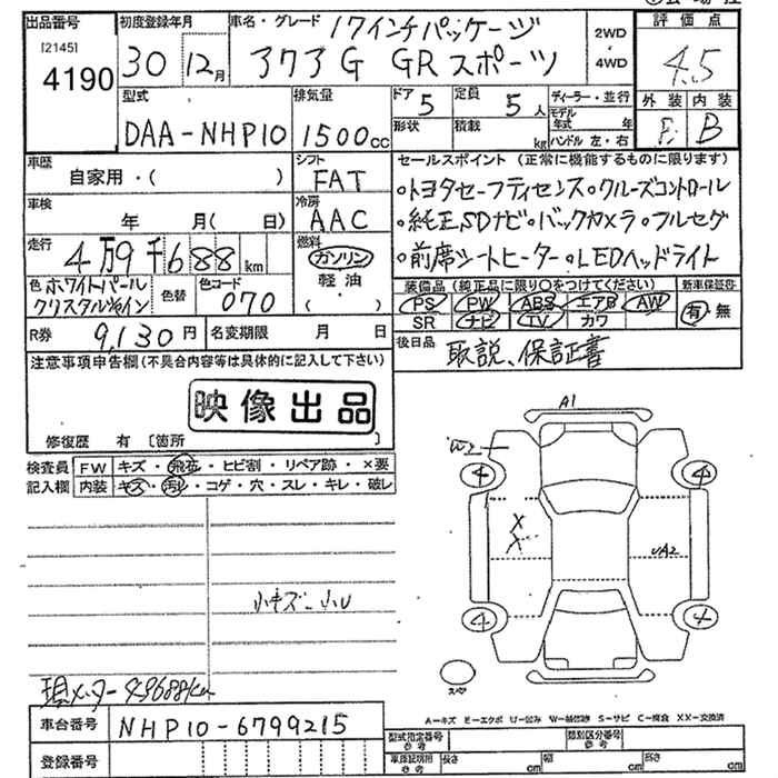 G GR SPORT 17 INCH PACKAGE NHP10 1NZ-FXE Передний CVT 1.496 л 74 л.с AИ-92 2 527 200 ¥