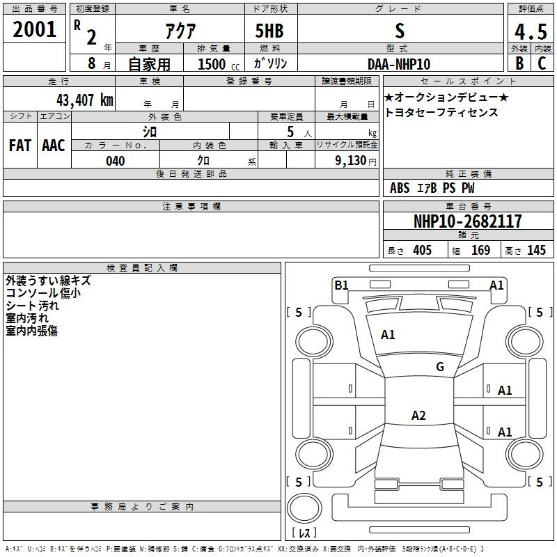 S STYLE BLACK NHP10 1NZ-FXE Передний CVT 1.496 л 74 л.с AИ-92 2 068 000 ¥