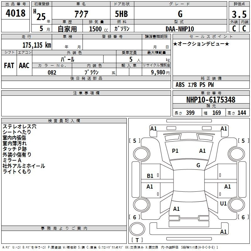 | S | NHP10 | 1NZ-FXE | Передний | CVT | 1.496 л | 74 л.с | AИ-92 | 1 800 000 ¥ | |