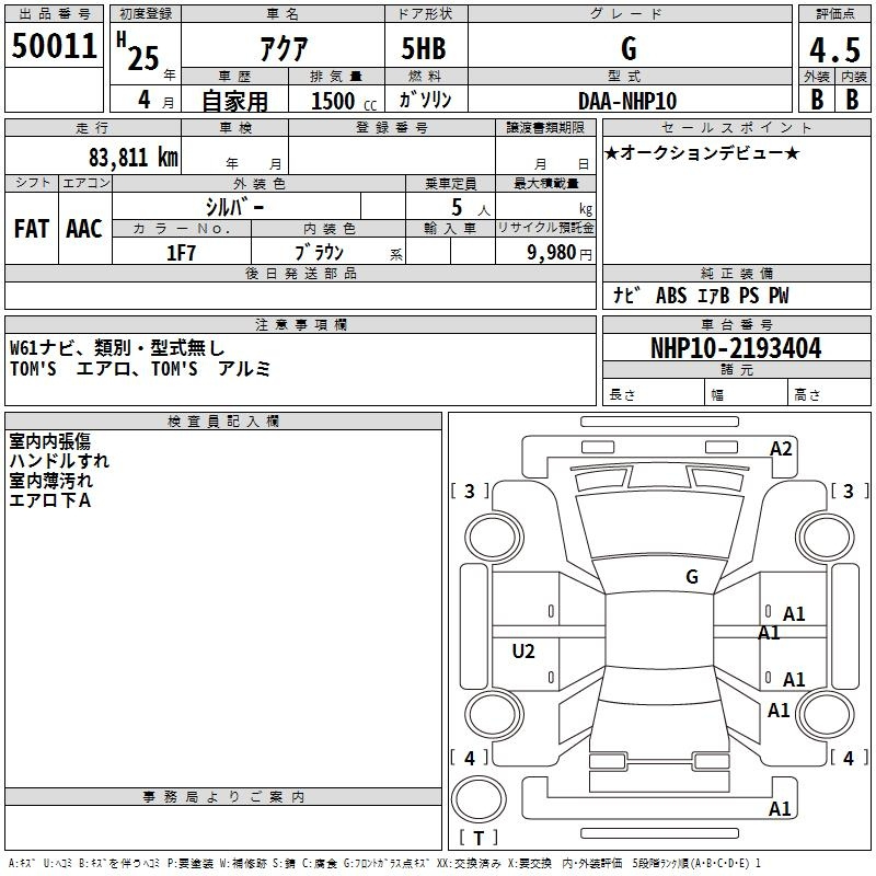 G GS NHP10 1NZ-FXE Передний CVT 1.496 л 74 л.с AИ-92 2 220 000 ¥