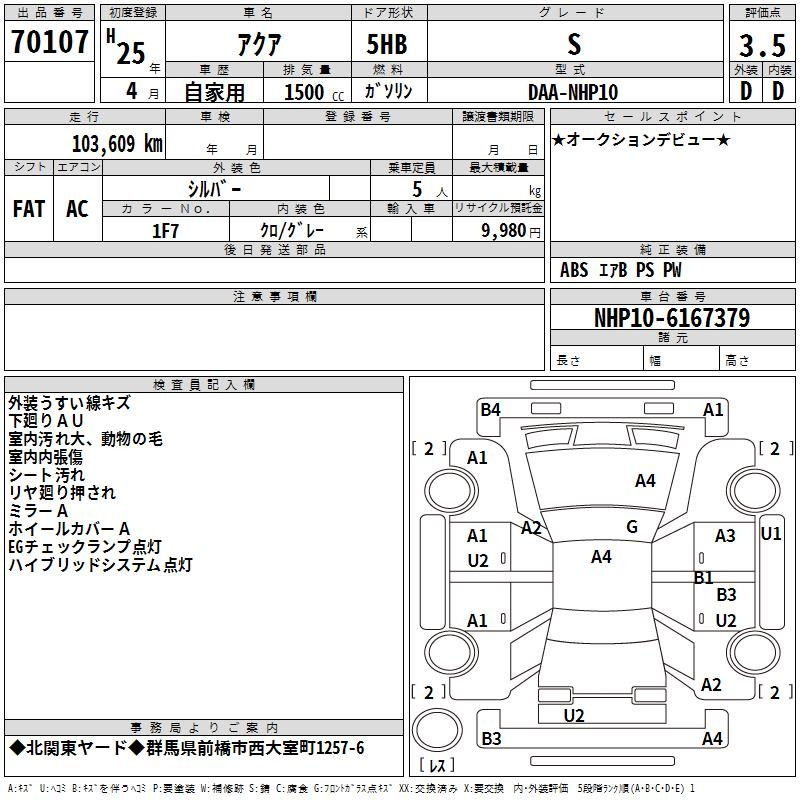 | S | NHP10 | 1NZ-FXE | Передний | CVT | 1.496 л | 74 л.с | AИ-92 | 1 800 000 ¥ | |