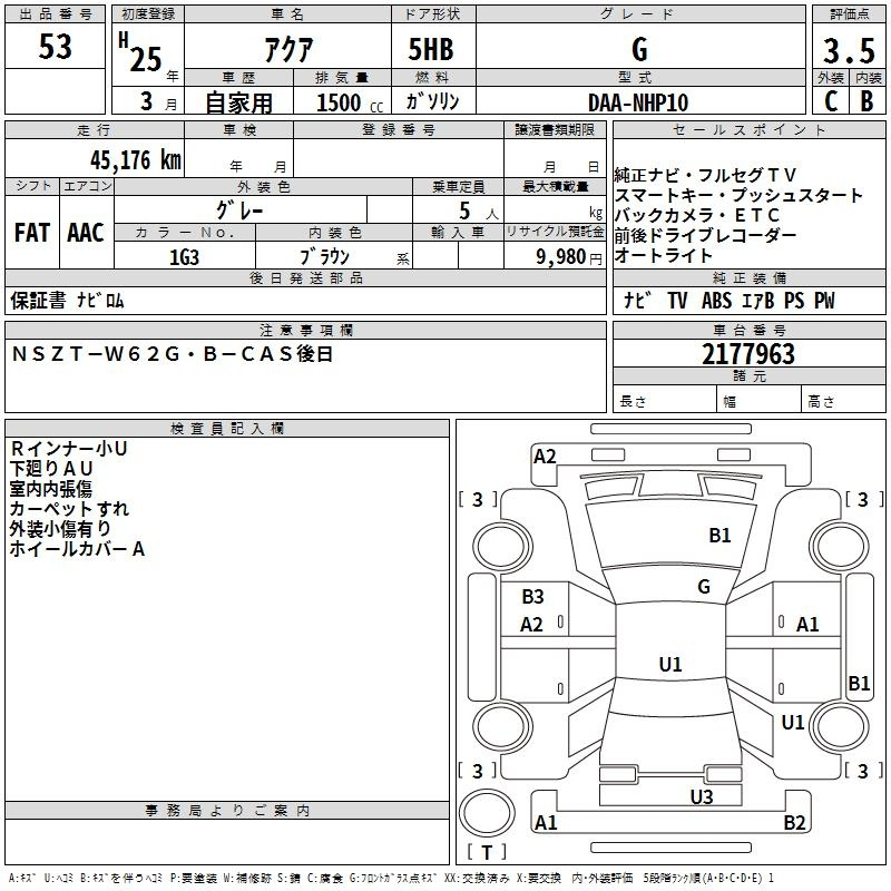 G GS NHP10 1NZ-FXE Передний CVT 1.496 л 74 л.с AИ-92 2 220 000 ¥